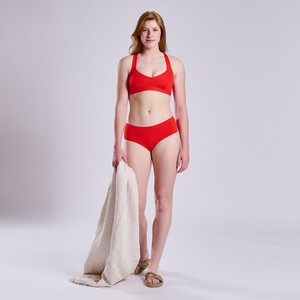 The full coverage bikini pants with an elastic waistband. For an elegant and classic style at the beach. This reversible bottom won't let you down during your sportive activities.