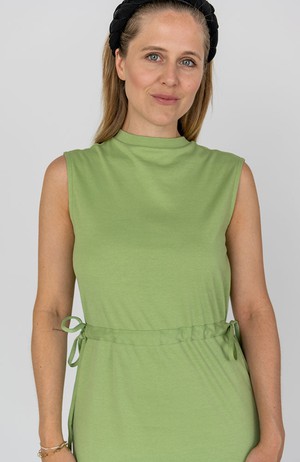 Cute, summery midi dress in apple green from our new German brand STORY OF MINE. The dress is made of 100% organic cotton, has a high neckline and a drawstring waist allowing you to tighten her any way you like.