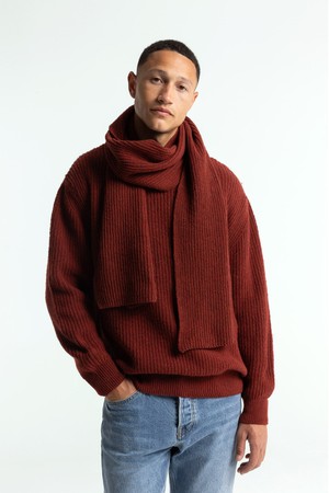 A soft and warm long scarf made from recycled wool and cotton, perfectly paired with a matching beanie and sweater.