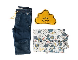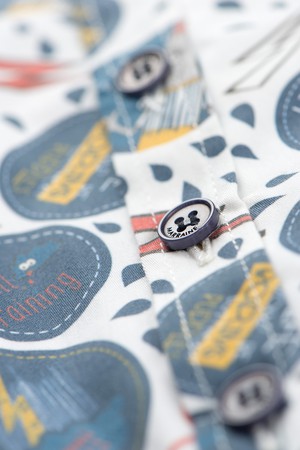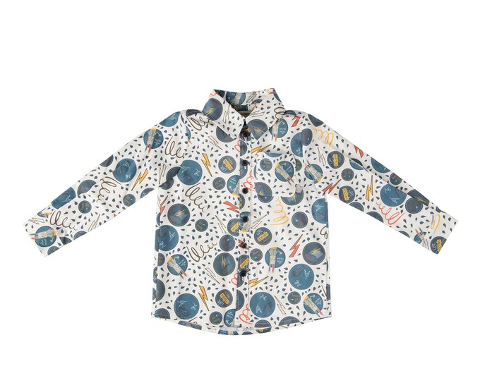 Details: shirt collar, long sleeves, breast pocket, button placket, corozo buttons, exclusive Marraine Kids print