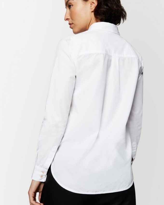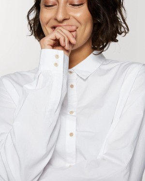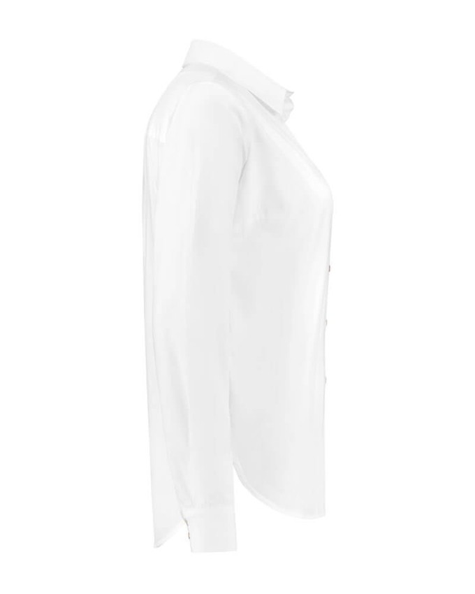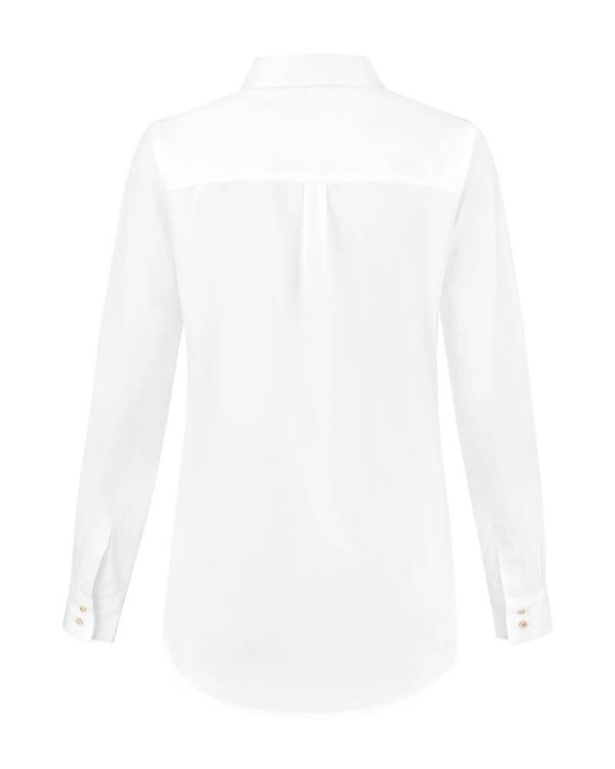 Every wardrobe needs a crisp, white blouse and Michelle is just that. Create a professional look, or match this wardrobe classic casually with jeans.