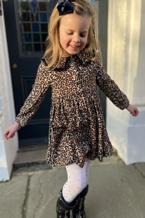 Our girls leopard print dress is here. Gone are the days when your little one looks at your wardrobe and says “I wish I could wear a pretty dress like you mummy!” Well… now she can love your dress and wear a little version of her own! After all every little girl needs a special dress just like her mummy!