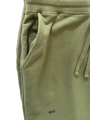 Kontrastreicher WOTE Logoprint auf dem rechten Oberschenkel