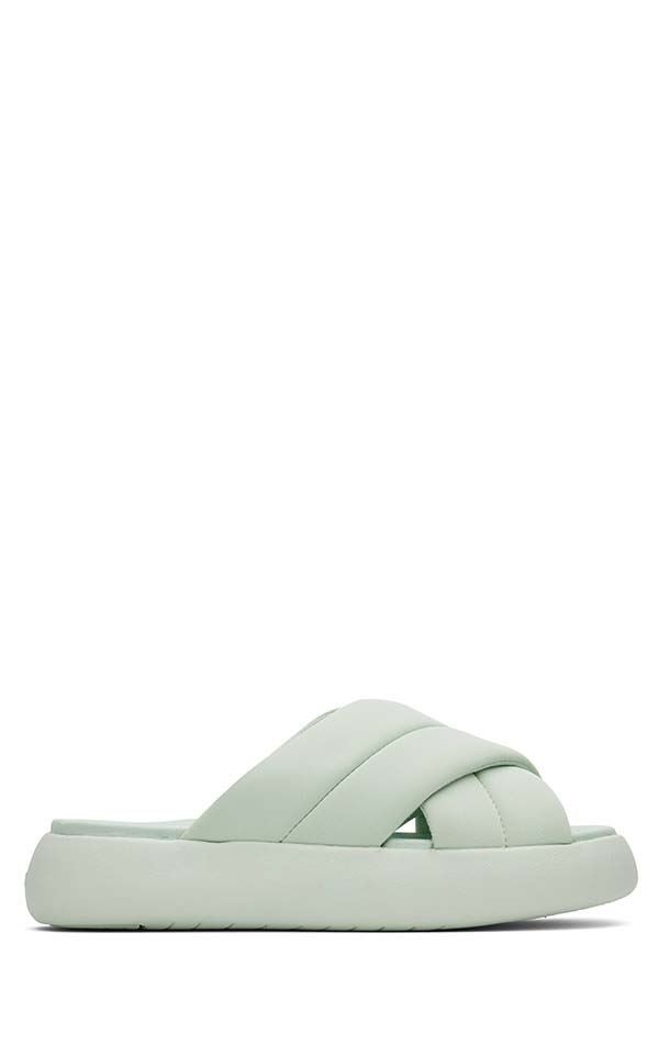 Slip on the Mallow crossover slides with criss-cross straps and REPREVE® recycled polyester blend uppers, made with post-consumer plastic bottles.