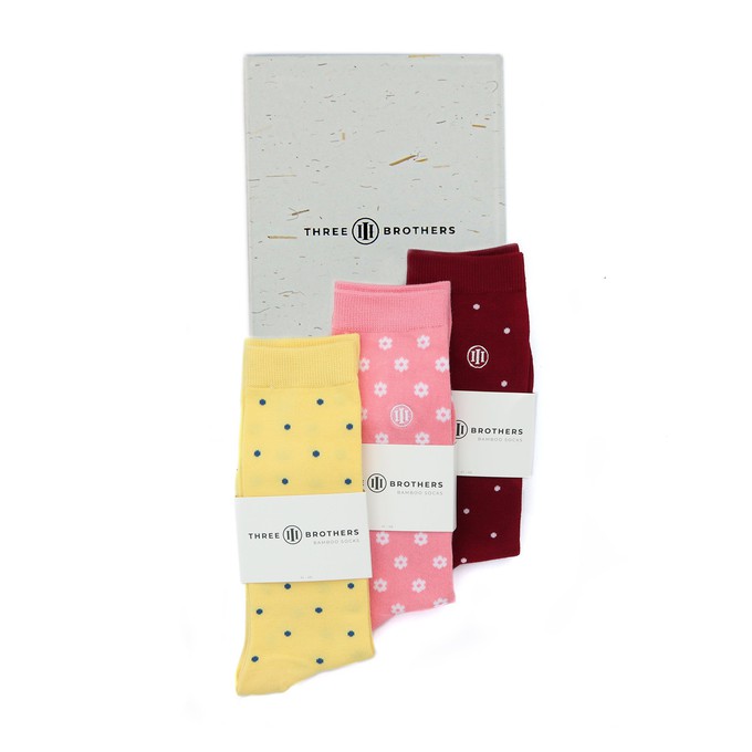 A gift box with your three favorite pairs of socks. Discount on your socks, showcased in a gift box made of recycled straw with magnetic closure.