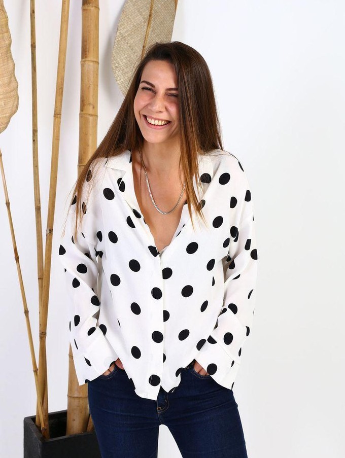 Vintage dots will return the shirt style to the 60’s! With its black and white color and comfortable design, it is a timeless piece that you can use from day to night.