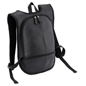 The bag is handmade using reclaimed rubber of tyre inner tubes. The materials is hard wearing and waterproof. The back of the backpack and adjustable shoulder straps are cushioned to make the backpack sit comfortably. It also has a padded compartment inside for you to store your tablet.