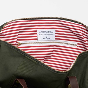 Locally produced: The bags are created by hand in Hamburg, Germany. The cotton canvas is woven and dyed in Turkey, where they buy the cotton directly from local farmers. The leather comes from a tannery near Istanbul.