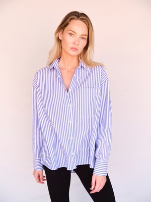 Beschreibung: Lieblings Statement-Piece! Unsere coole Streifen Bluse aus Bio Baumwolle! Leicht überschnittene Schulter, oversized Shape und eine aufgesetzte Brusttasche sowie zauberhafte kleine Perlmuttknöpfe. Sie ein absoluter Liebling und Key-Piece der Capsule Wardrobe. Vorne ist sie eher gerade geschnitten, hinten abgerundet und etwas länger. Sie bietet viele Kombinationsmöglichkeiten. Pur, als Layering-Style, offen mit Top darunter oder preppy fürs Office! We love!