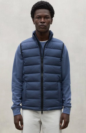 Blue3 (color: indigo blue) puffer bodywarmer from Ecoalf made of 100% recycled polyester (mono material) and totally PETA approved vegan. This beautiful bodywarmer is waterproof, PFC-free, nice and warm yet very lightweight, comfortable and breathable.