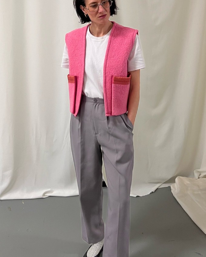 Ethically produced: The collections are designed and sewn in their own studio and one other workshop nearby. These studios are in Amsterdam, the Netherlands. The materials come from a Dutch webshop with woollen blankets and individual online sellers via, for example, Marktplaats and Noordgoed.