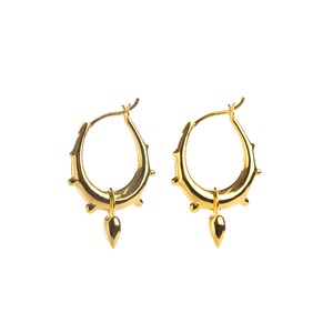 Solid silver (not hollow) tribal style hoops with a silver spike and granulation balls. Edgy enough to stand out but pretty enough to match any outfit. These hoops have a weight of quality. Hand made with hinged fastenings, we think you will be wearing these for years.