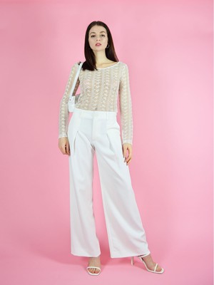 The Girlboss trousers come in a sexy wide leg shape and relaxed fit. They have a slightly lower waist and are true to size.
