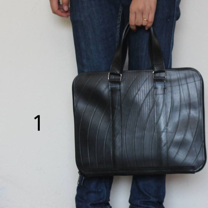Our Slimline Inner Tube Padded Laptop Bag is a smart looking business accessory with eco credentials. Handmade using the recycled rubber of tyre inner tubes, the design perfectly showcases both the durability of the material and its unique tread pattern.