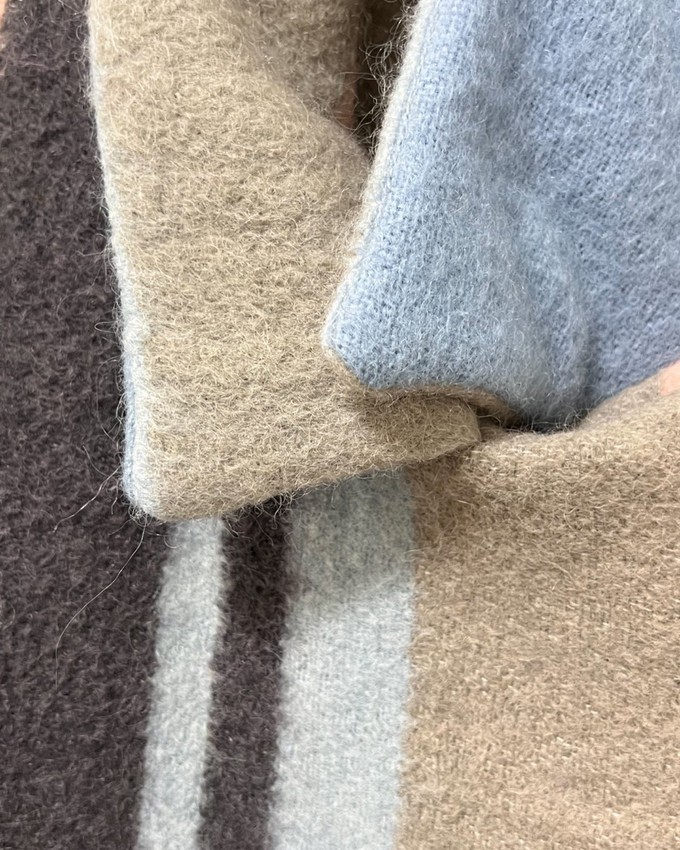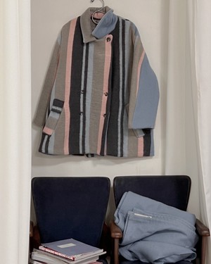 Ethically produced: The collections are designed and sewn in their own studio and one other workshop nearby. These studios are in Amsterdam, the Netherlands. The materials come from a Dutch webshop with woollen blankets and individual online sellers via, for example, Marktplaats and Noordgoed.