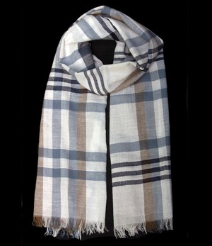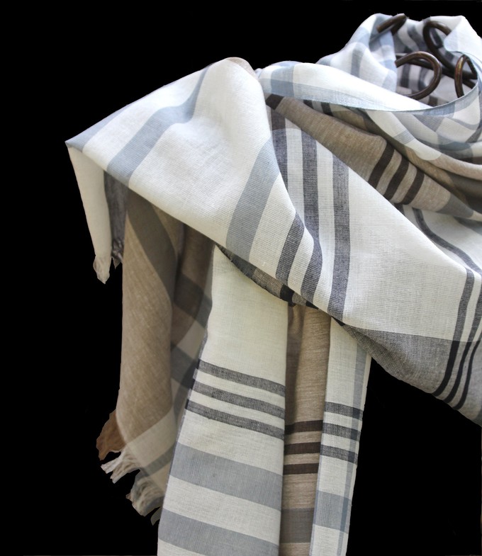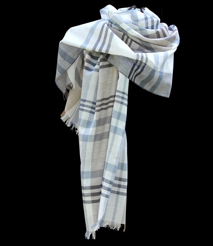 Scarf organic cotton, white with black-grey-brown check from Via India