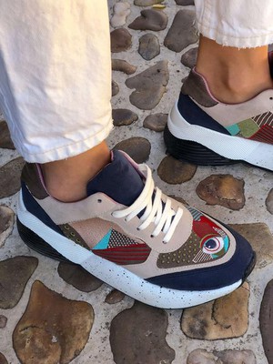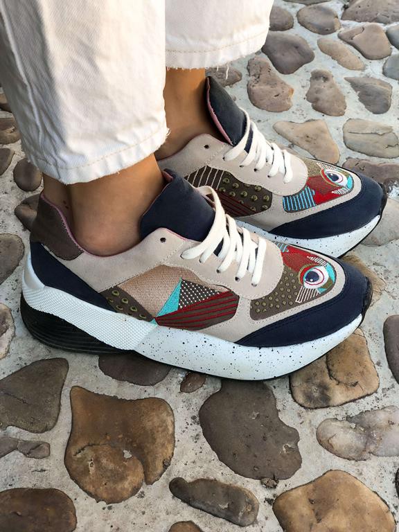 Super original vegan and sustainable sneakers, ethically made in Spain from recycled fabrics! Unique and colorful embroidery. With removable insole.