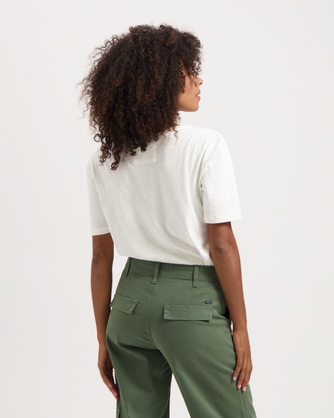 Olivia is our regular-fit T-shirt for women, made from a soft blend of hemp and organic cotton. Thanks to the natural fibres, the fabric feels light and breathable—perfect for everyday wear.
