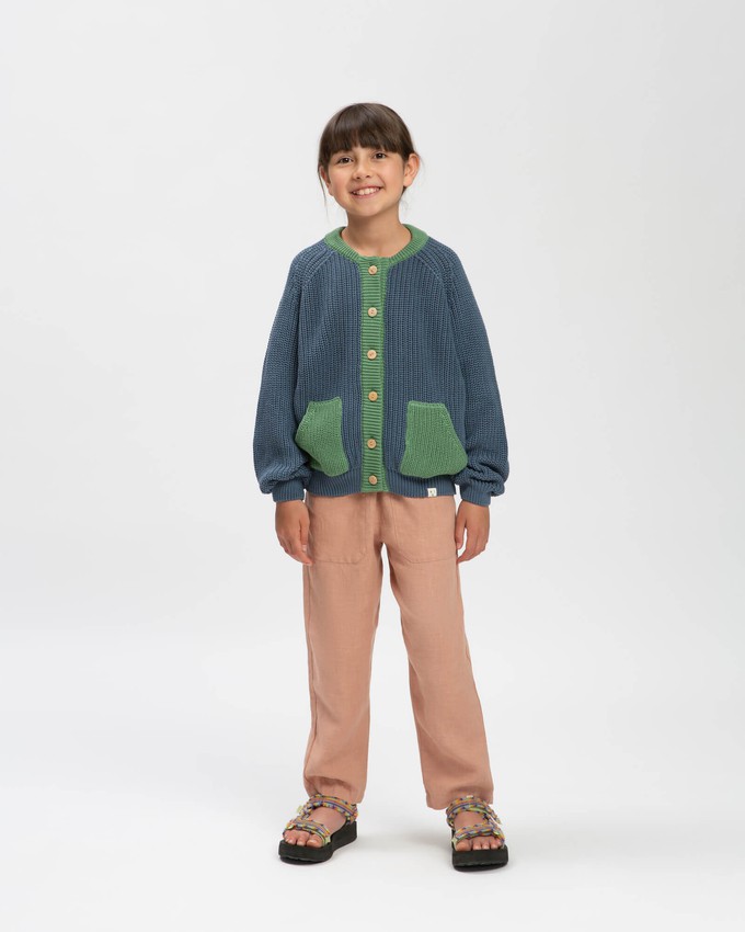 Spring vibes for little sprouts with our Sunny Cardigan. Crafted from soft, breathable cotton, it is perfect for keeping your little one toasty on those chilly spring days. Featuring a classic round neck for easy layering, it pops with a contrasting button placket and playful patch pockets on the front.