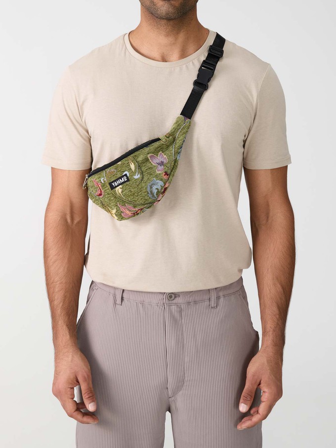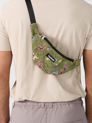 Robust waist bag made from sturdy upholstery jacquard fabric, lined with eco-friendly Tencel™ — with interior pockets, a hidden back pocket and two-way zipper.