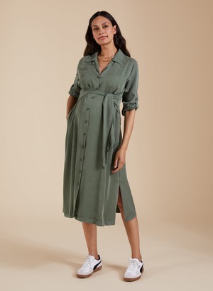 Kelsy is our best-selling maternity dress, available in numerous colourways and prints. Made from soft and drapey TENCEL™, it’s super-flattering as the side ties fasten over the bump to give shape to your growing silhouette. So versatile, it’s one to see you elegantly through meetings, date nights and baby showers. And its button fastenings means it’s great to wear if breastfeeding once baby arrives.