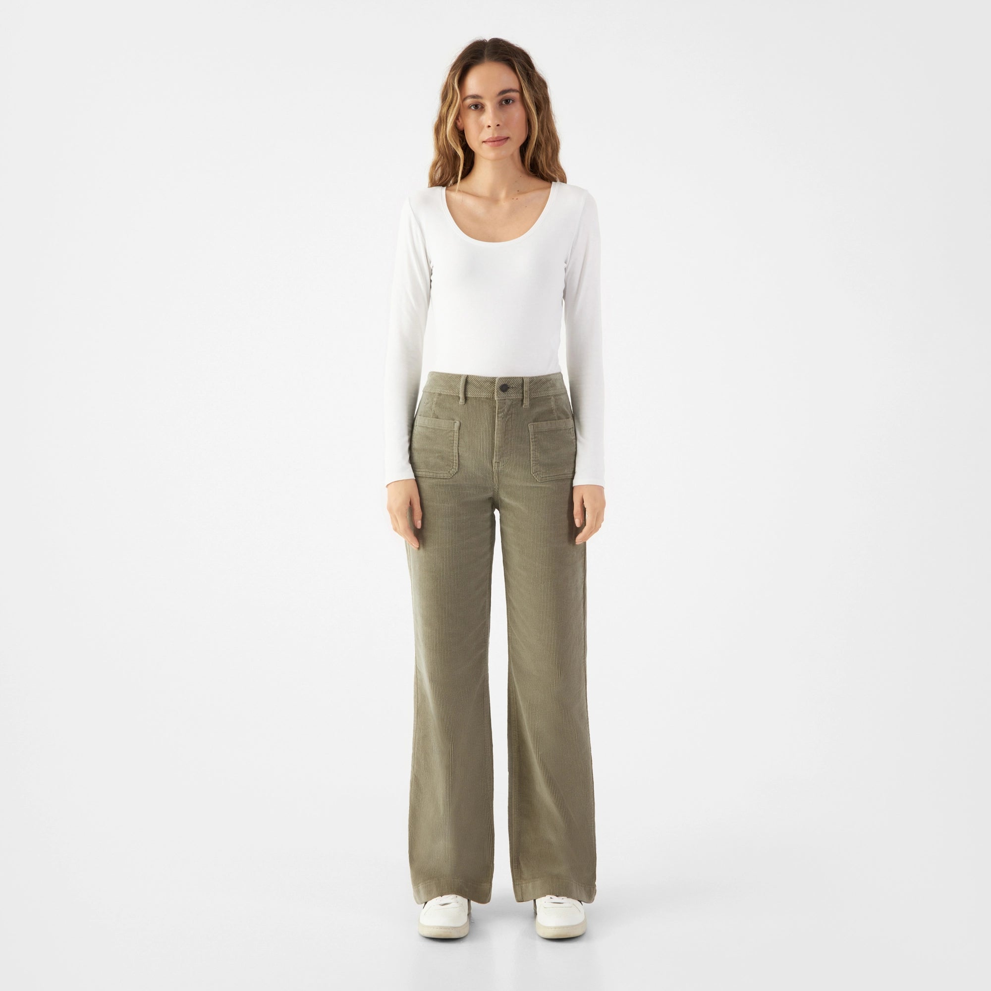 DEW Sailor is our best-selling flared fit with a sailor-inspired update: patch pockets at the front and back give this high-waisted style its signature maritime look. Made from soft organic stretch cord, it pairs perfectly with a cropped top to highlight the pocket details.