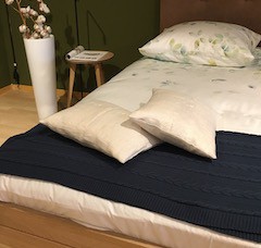 The blanket is also available in combination with other sleeping products in navy, pink or grey melange.