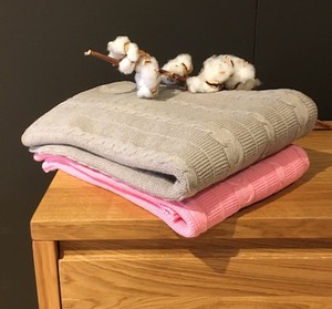 The blanket of With a touch of Rose is knitted in a nice cable and can be used for a long time. The blankets are 100 x 150 cm. Double folded they can be used as a crib blanket, just as a bedstead blanket. The blanket can also be used on the toddler or adult bed.