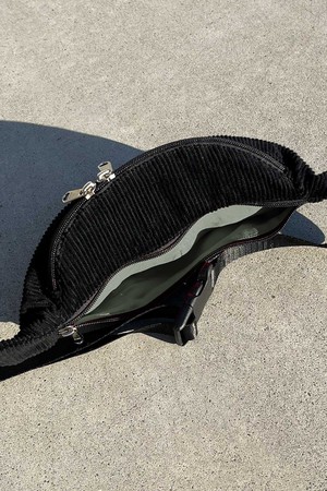 Versatile waist bag crafted from cotton corduroy, lined with eco-friendly Tencel™ — with interior pockets, a hidden back pocket and two-way zipper.