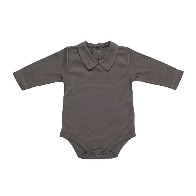 The Newborn Body in certified Organic Pima Cotton has an Angel embroidery in contrasting color on the neck flaps.
