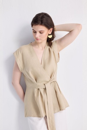 Our Power Moves Top is a wardrobe must-have, your ultimate summer staple! This beautiful wrap top in neutral beige works as well for the office as it does for a dinner with friends. Pair it with sleek trousers or a pair of jeans and see where your day takes you!
