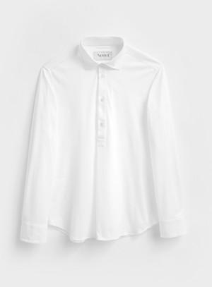 A versatile and ethical men's popover shirt in a modern, comfortable, and soft white fabric. This smart-casual popover shirt can be dressed up with a sustainable blazer and our Neem Trousers or dressed down for a more relaxed look. Made with sustainable and renewable materials, this shirt is a conscious choice for any wardrobe.Can be worn tucked in with a tie in a sharp way or loose as a beach or weekend shirt.Made with 50% recycled cotton and 50% Organic cotton.