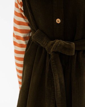 This piece brings back memories of our own childhood and oozes nostalgic charm. Now catapulted into the present day with a modern design, our belted corduroy dress proves to be pretty cool. Made from super-soft 100% organic cotton, it features patch pockets and a tie belt.