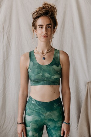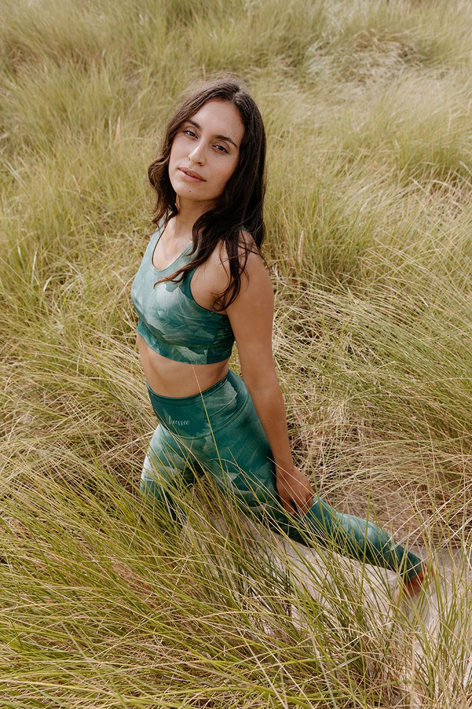 Our love for nature, for the color green and for living green, speaks in this print. The fabric, made of durable materials, feels wonderfully soft and moves with you like a second skin. The firm stretch fabric gives light support. The wide racerback cutout on the back makes it possible to wear a sports bra under your top.