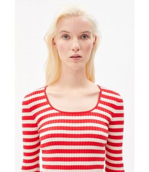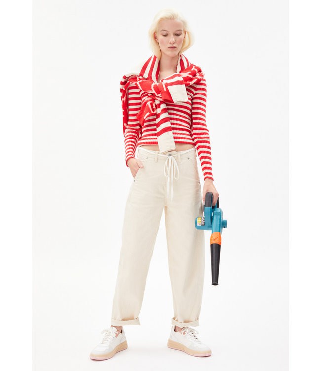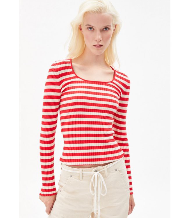 Maak kennis met de nieuwe kleuren voor het voorjaar en haal de zon in je garderobe. Rib top ALAANI uit de collectie van Armedangels is er dit seizoen met een ronde hals in frisrode streep!