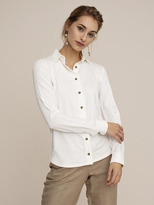 This is a must have for every wardrobe. This timeless blouse is super comfortable. The fabric is made of 92% Viscose (LENZING™ ECOVERO™) and 8% elastane. This fabric does not need to be ironed, so ideal for travelling.