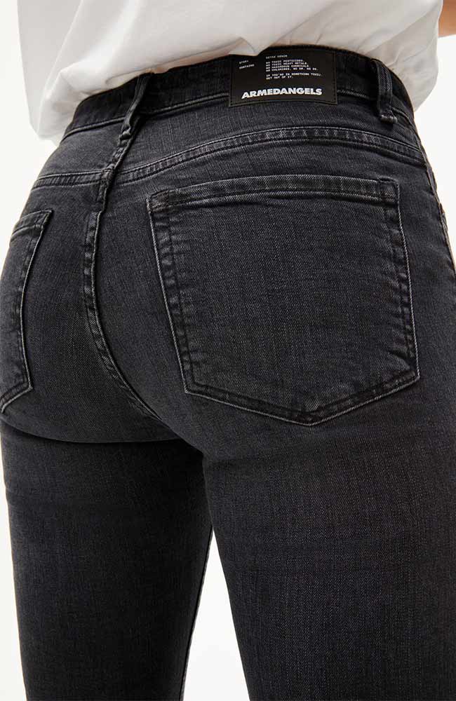 These jeans are from the Detox Denim line of ARMEDANGELS what does that mean for these jeans 100% certified organic cotton from certified cotton suppliers is used. Much less water is used in the production (than with conventional denim) and no toxic fertilisers or pesticides are used.